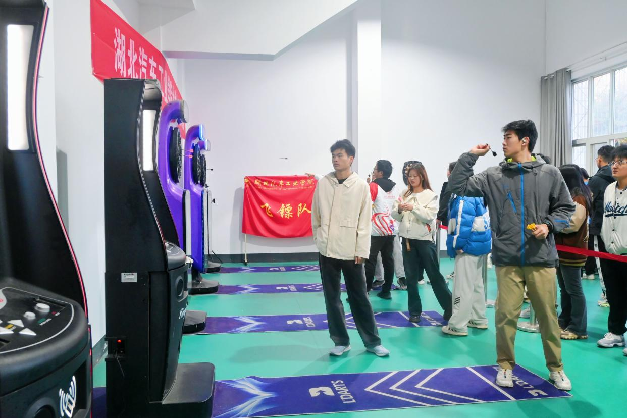 本网讯(文/杜伦)飞镖如箭,赛出激情!由体育运动委员会主办,团委、体育部承办的湖北汽车工业学院“工行杯”第二届体育文化节飞镖比赛于12月9日在校体育馆开赛。比赛共设置高分赛、301减分赛、米老鼠(标准)三个项目,来自12个学院和单位的12支代表队约200名飞镖爱好者参与角逐。开幕式由体育部副主任肖鹤主持。