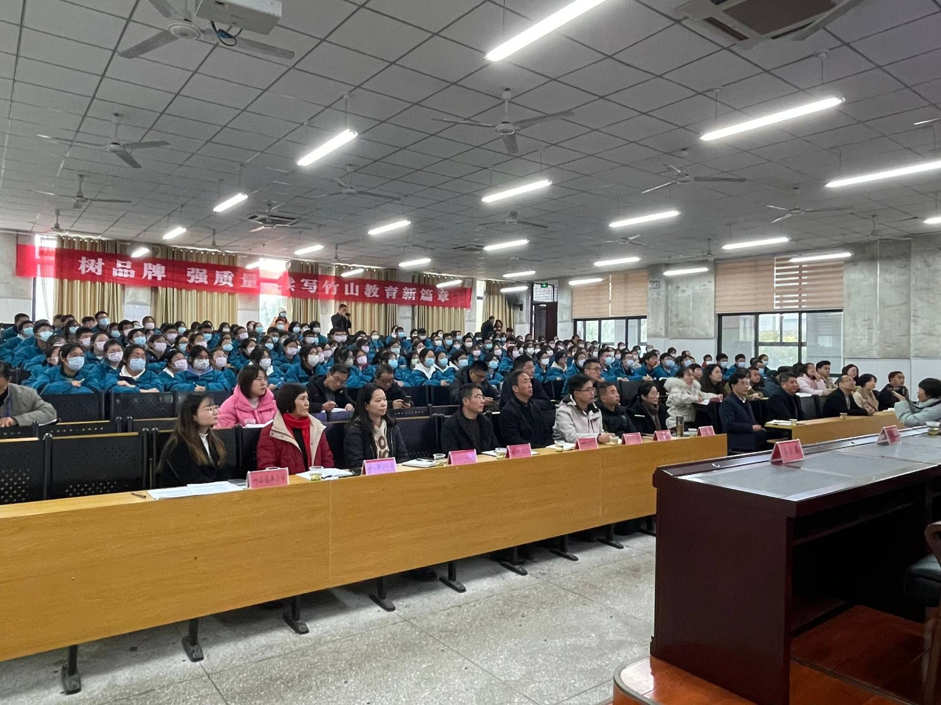 本网讯(文/图 孙洪刚、金威威、黄莺)12月12日,由我校和中国计算机学会主办,我校马克思主义学院、竹山县教育局、竹山县第一中学承办的大中小学思政课一体化建设成果展示暨共同体建设经验交流会在竹山县第一中学大礼堂举行。马克思主义学院分党委书记计毅波,中国计算机学会高级会员、汽车工程师学院院长陈宇峰,汽车工程师学院分党委书记曾小岩参加了此次会议。会议由竹山县第一中学校长李大山主持。
