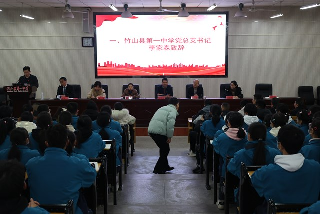 竹山县第一中学党总支书记李家森在致辞中代表竹山县第一中学对参加本次会议的领导、老师及嘉宾表示热烈欢迎。他指出思想政治理论课贯穿于大中小学教育教学过程,是立德树人的重要途径,加强大中小学思政课一体化共同体建设具有重要意义。他介绍了竹山县第一中学近年来把坚定“主心骨”、唱响“主旋律”、守好“主阵地”、锻造“主力军”作为目标导向,建议充分挖掘和利用地方红色文化资源开展研学,在共同体建设中注重分享经验、做法、思路、举措,激发共同体建设在育人上的活力。