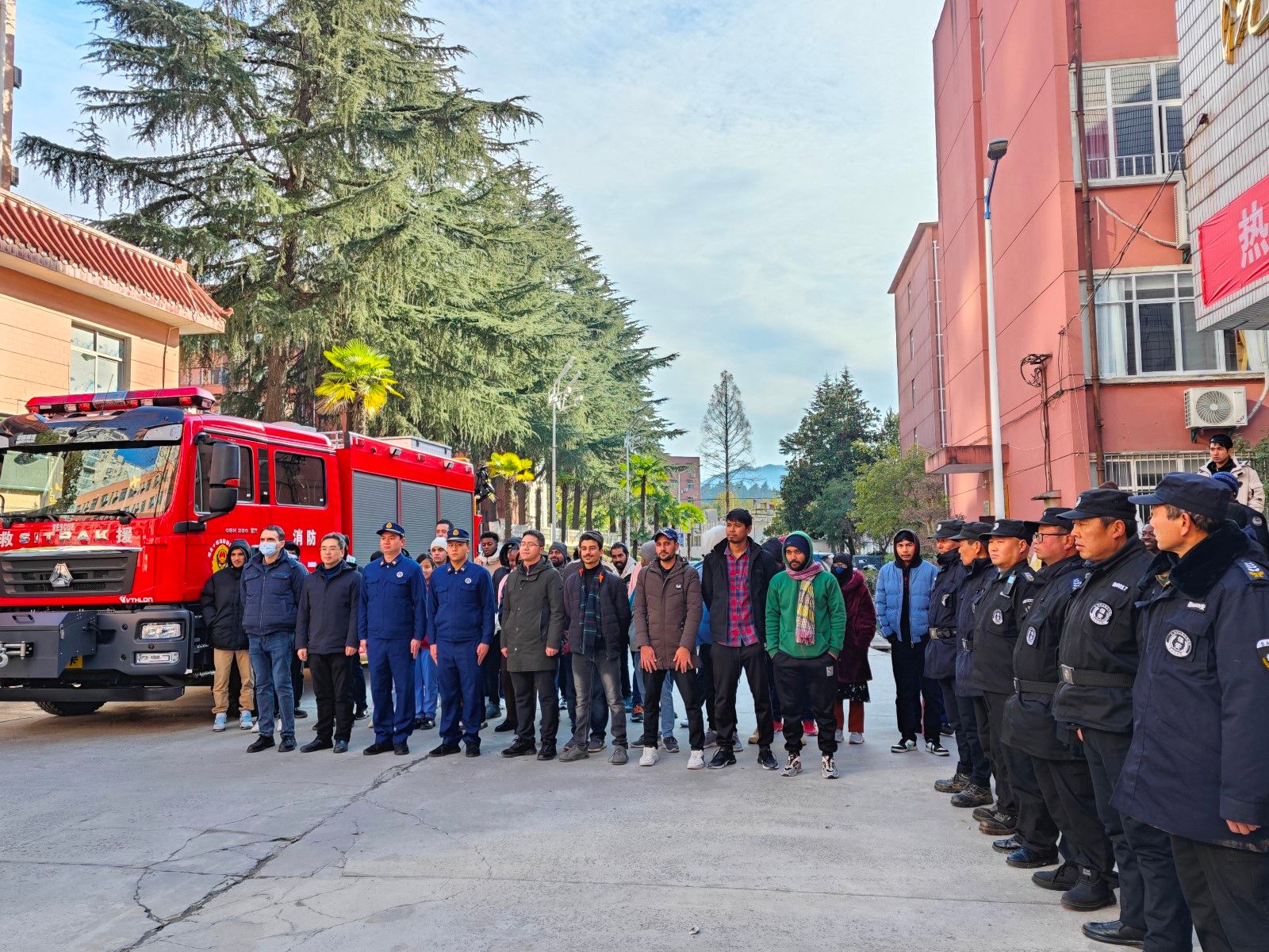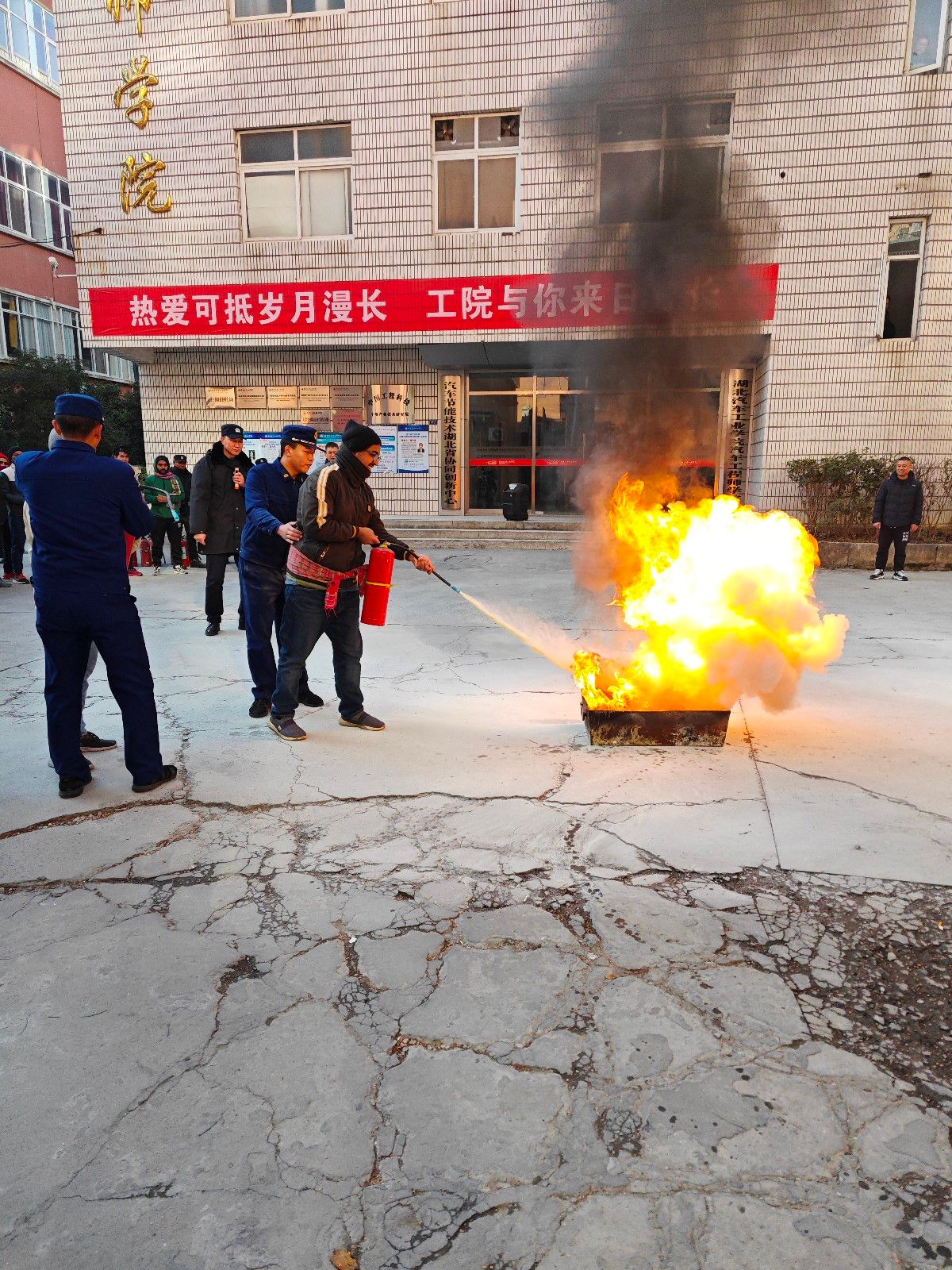 本网讯(文/图 薛树森)岁末年初,火灾事故隐患增多、风险增大。为进一步加强我校消防安全预防工作,全面提高寒假期间在校师生的消防安全意识,增强防火自救和逃生能力。1月23日下午,我校联合十堰市张湾区红卫消防救援站在留学生公寓开展消防疏散、逃生急救演练活动。