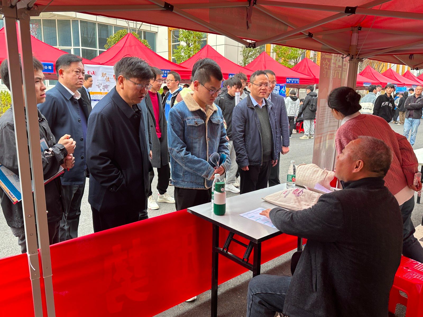 襄阳高新区管委会副主任李新伟、襄阳高新区党群工作部副部长李炜、襄阳高新区创业服务中心主任翟朋飞、襄阳高新区人力与社会保障中心副主任王国号、就业科科长马胜利、襄阳产学研基地主任汤德强、副主任赵新军、副书记余厚德亲临现场,了解学生求职情况和用人单位招聘需求。