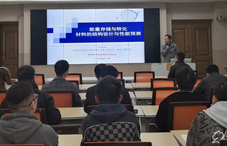 本网讯(文 辛杰/图 吴晴)为了营造良好的学术氛围,加深高校之间的学术交流。3月27日下午,数理与光电工程学院在教师发展中心1305教室顺利开展了“格致论坛”第30、31讲活动。此次“格致论坛”活动邀请到湖北文理学院的类淑来教授、徐可副教授作为主讲人,分别进行题为“能量存储与转化材料的结构设计与性能预测”、“二维铁磁半导体VI3中的基态磁构型和磁各向异性起源的理论研究”的学术报告。此次“格致论坛”由数理与光电工程学院张传坤副院长主持,学院学术科研骨干教师、学院全体研究生参加了此次论坛。