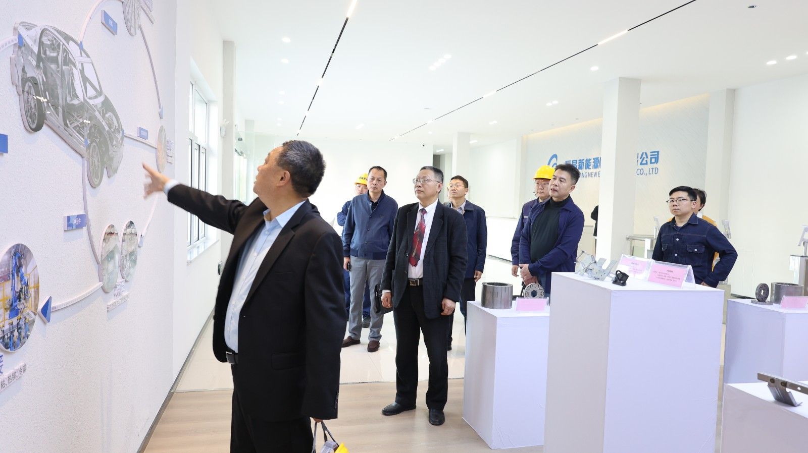 在恒畅集团子公司武汉聚鹏精密制造有限责任公司生产车间,郭都玺详细了解了产品研发、工艺、生产及销售情况。在集团科技创新板块——恒昌新能源(湖北)有限公司,尹传勇董事长向大家介绍了新能源汽车电机核心零部件定转子铁芯的研发及生产过程。随后郭都玺一行参观了公司精密测量实验室、观摩了高速自动化冲压及剪切设备运行过程。