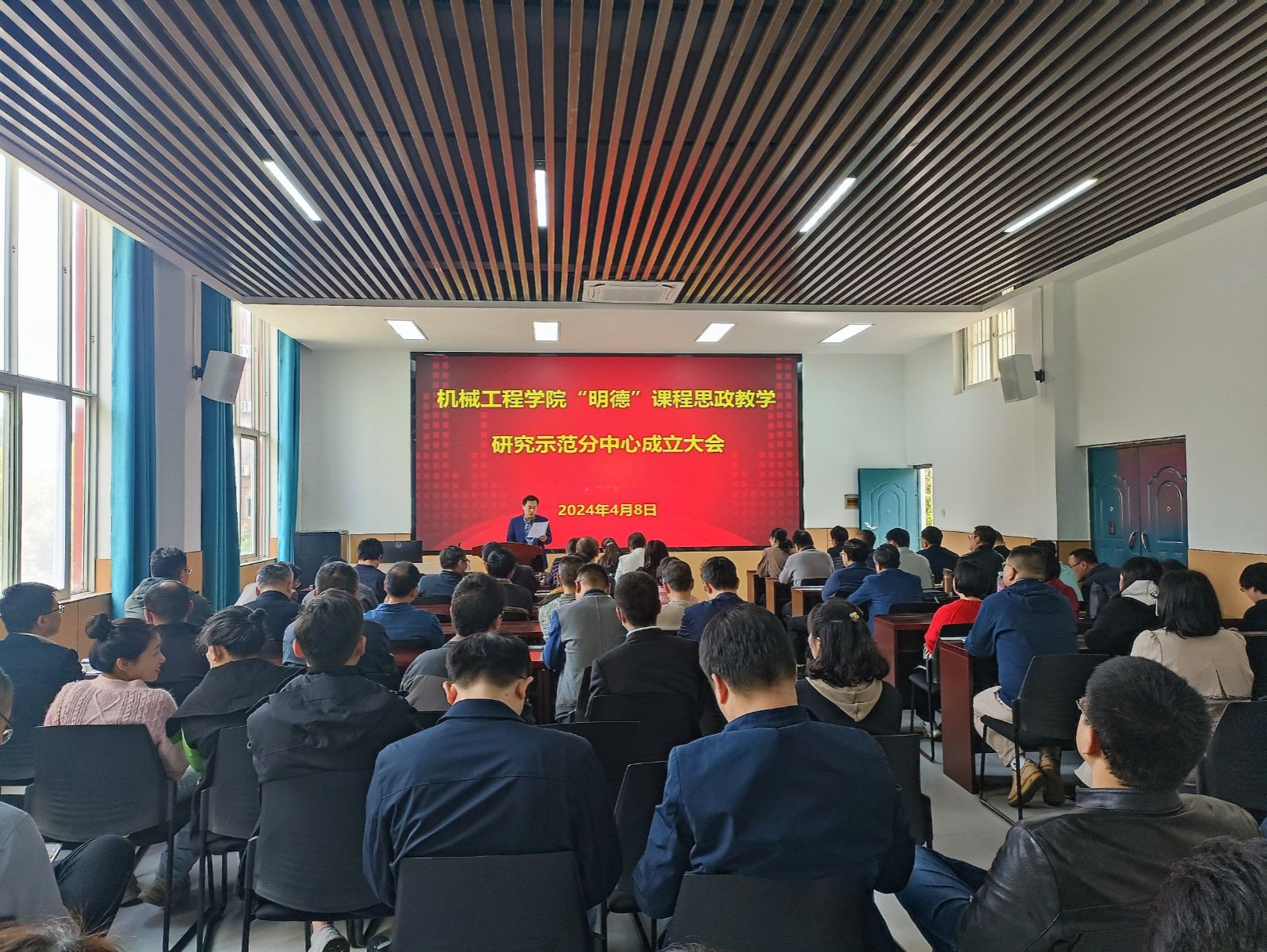 本网讯(文/官星伶)4月8日下午,“明德”课程思政教学研究示范中心机械工程学院分中心成立大会在机械工程学院实验楼J305举行。学校“明德”课程思政教学研究示范中心副主任暨马克思主义学院副院长成继平、马克思主义学院王莽莽老师、机械工程学院分党委书记崔海英、副院长王红霞、副书记马晓涛等领导出席成立仪式,机械工程学院全体教师参会。仪式由机械工程学院副院长王宸主持。