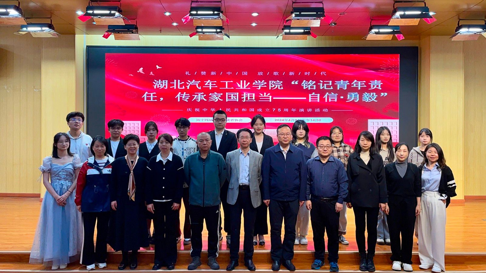 本网讯(文 邹尹婕、李晶晶/图 成然、高歌)口吐莲花舌绽春蕾,字字珠玑气贯长虹。4月8日下午,学校图书馆(档案馆、校史馆)、校团委在图书馆逸夫报告厅共同举办湖北汽车工业学院“铭记青年责任,传承家国担当——自信·勇毅”庆祝新中国成立75周年主题演讲比赛,活动由湖北汽车工业学院社团联合会、第十四届图书馆读者协会承办。图书馆(档案馆、校史馆)党支部书记陈战锋、馆长张慧、副馆长谭洪波、副馆长李钊、各部主任、校团委王小雨老师参加本次活动。