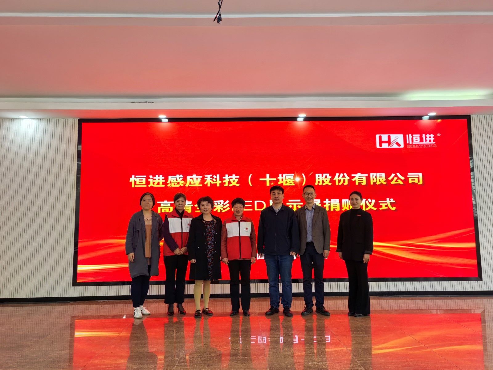 本网讯(文 李晓君/图 叶珍)4月12日上午,恒进感应科技(十堰)股份有限公司的LED显示屏捐赠仪式在5101报告厅举行。招生与就业处副处长刘荣,就业指导服务中心主任叶珍,副主任李晓君参加了捐赠仪式,会议由李晓君主持。
