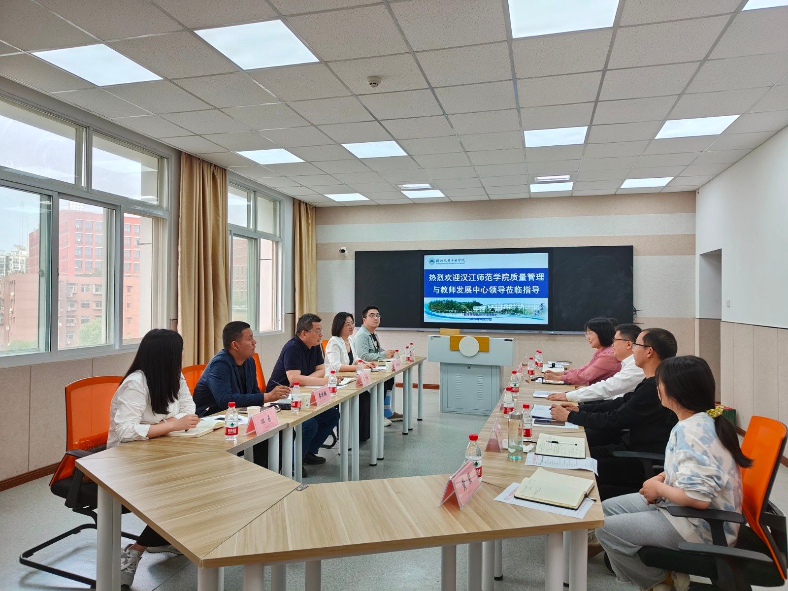 本网讯(文 李月、黄翌/图 黄翌、陈安)4月23日下午,汉江师范学院质量管理与教师发展中心(教学督导室)主任夏小林带队来我校开展业务调研,学校教学质量监控与评估中心(教师发展中心、高教研究所)全体成员参加了座谈交流,会议由教学质量监控与评估中心主任钱洁主持。