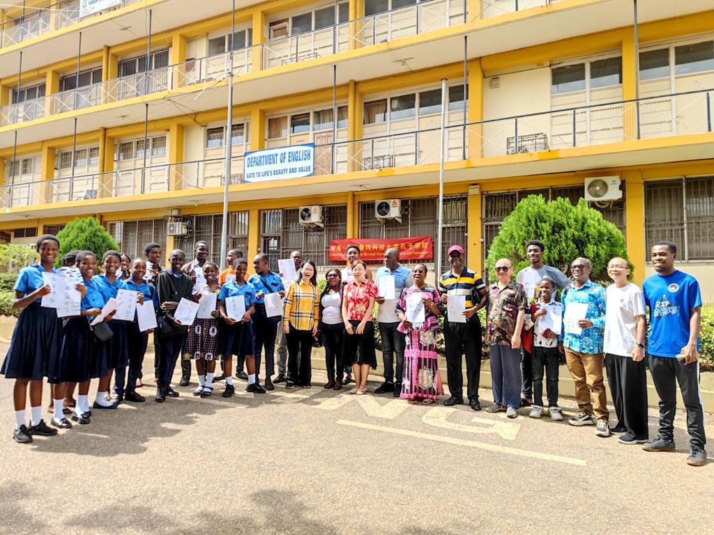 本网讯(文/周桂平)加纳当地时间4月27日上午,我校孔子学院举行2024年“国际中文日”庆祝活动。恩克鲁玛科技大学、孔子学院教学点师生及其他中文爱好者参加了本次活动。