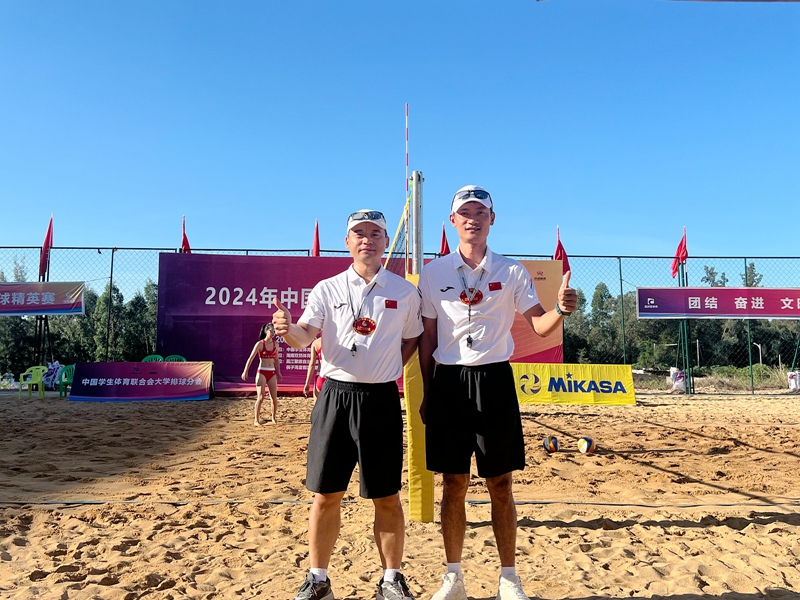 本网讯(文 郭建明/图 组委会)9月23-27日,中国大学生沙滩排球精英赛在昌江棋子湾全民健身沙滩排球训练基地举行。我校体育部教师、沙排国家级裁判郭建明老师担任本次比赛的技术官员工作,为比赛贡献了汽院力量。