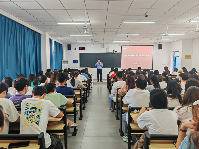 本网讯(文/图 赵氏璇)9月29日上午,我校优秀校友、中央财经大学保险学院陈华教授应邀来校为2023级旅游、国贸专业全体学生作校友事迹报告。
