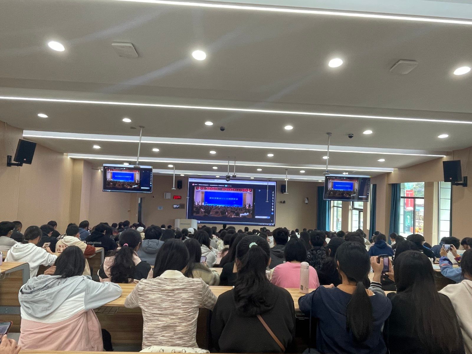 10月27日上午,学校教务处在北校区8106教室组织了人工智能通识课第一课集中线上听课活动,学工部部长王关锋、教务处处长宫爱红,体育部、汽车工程师学院全体教师,外国语学院2024级新生及教务处全体成员参与听课。同时,各学院(部)也设立了分会场,组织师生集中观看直播。
