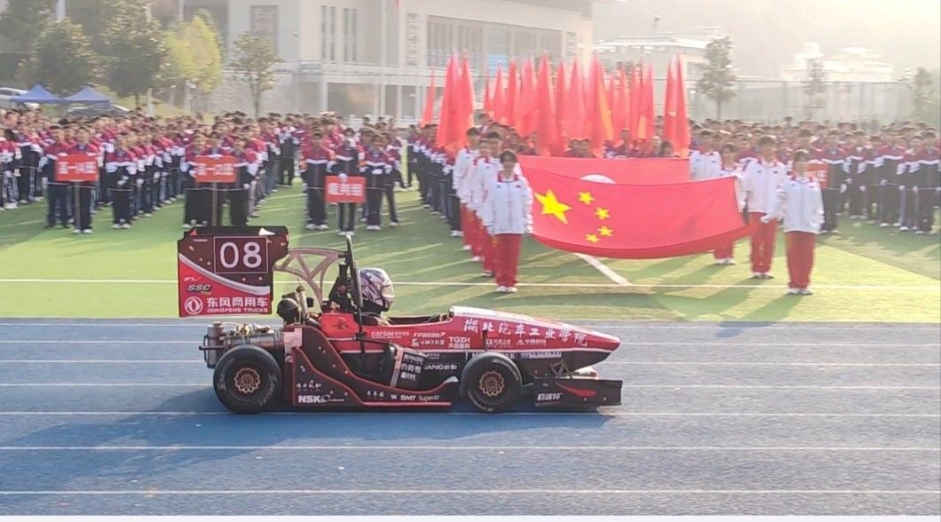 随着赛车一圈圈奔驰,开幕式主持人用热情洋溢的声音详细介绍了我校东风HUAT车队历史及其历年来在各项赛事中的突出表现,并鼓励所有学子勇敢追梦,奋力拼搏,成就自己的赛车人生。