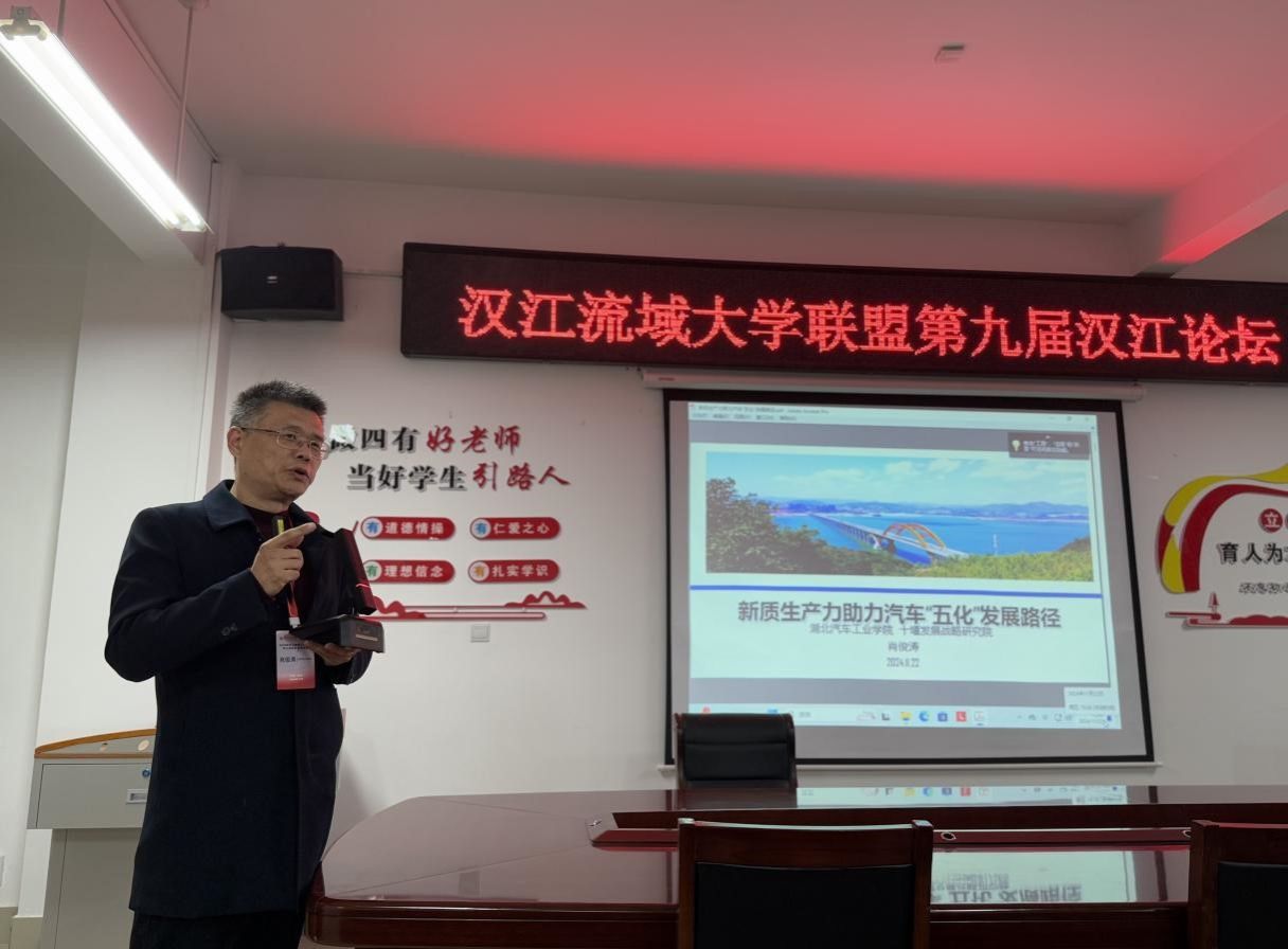 本网讯(文/图 南瑞江)11月20日,第九届“汉江论坛”在南阳师范学院召开。研讨会由河南省社会科学院南阳分院、南阳发展战略研究院院长王铁红主持,我校经管学院肖俊涛教授受邀在学术论坛上做“新质生产力助力汽车‘五化’发展路径”的专题报告。报告分四个部分,分别是我国汽车产业发展现状、汽车“五化”发展趋势、新质生产力相关知识、新质生产力助力汽车“五化”发展路径。肖教授还对未来智能网联汽车“车路云一体化”应用场景进行了阐述。据悉,本次“汉江论坛”学术研讨的主题是“新质生产力与汉江生态经济带高质量”,来自汉江流域大学联盟11所高校的30余名专家学者参加了本次论坛。(审稿 李保林)