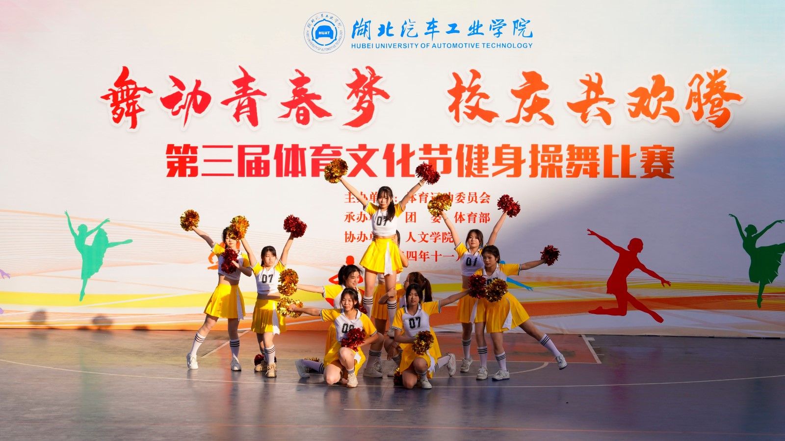 本网讯(文 杜伦/图 青年传媒中心)初心如磐践使命,砥砺奋进启新程。11月30日,“舞动青春梦 校庆共欢腾”第三届体育文化节健身操比赛在篮球场上热烈举行,于校庆日来临之际,为校园增添一抹跃动亮色。体育部主任熊玲、校团委书记杜祥军、宣传部副部长杜鹏、保卫处副处长张华及各二级学院分党委副书记、分团委书记、辅导员老师出席本次活动。