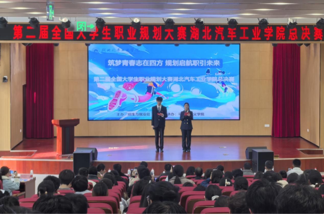 第二届全国大学生职业规划大赛湖北汽车工业学院总决赛由学校招生与就业处主办,马克思主义学院承办,成长赛道校赛自今年11月启动以来,学校先后举办大赛动员说明会、大赛在线培训会、学生指导培训会和就业指导能力培训专题会,同时先后开展校园宣讲会、“生涯大讲堂”专题讲座、区域专场招聘会等丰富配套活动,积极营造浓厚赛事氛围。经过前期充分酝酿、精心组织和广泛动员,近3300名在校大学生报名参赛,10名选手顺利通过前期的预赛、初赛和复赛成功晋级此次决赛。