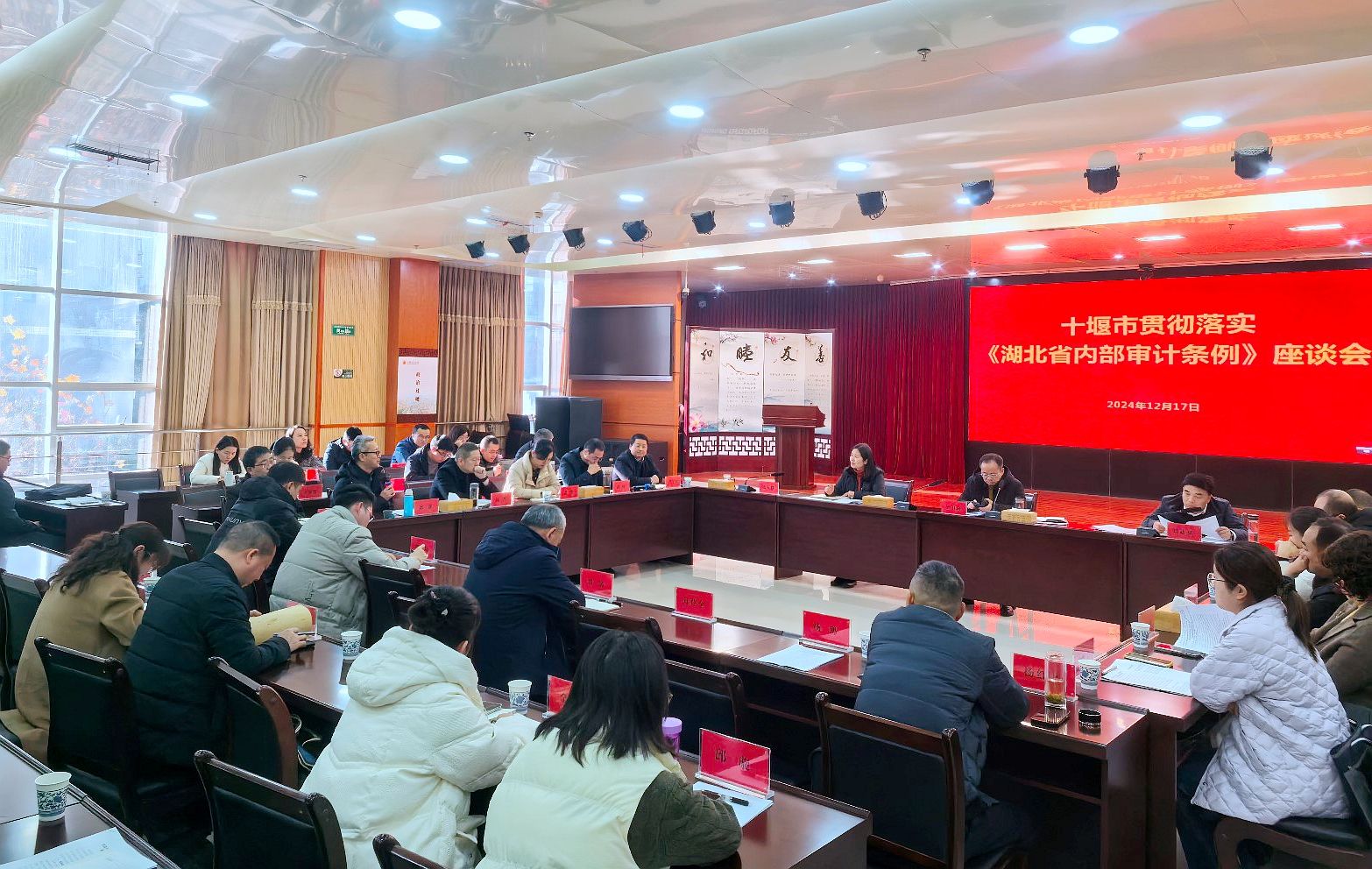 本网讯(文 瞿艳丽/图 李宏图)12月17日,十堰市审计局组织召开《湖北省内部审计条例》专题学习暨高质量发展座谈会,湖北省审计厅政策法规处处长梁卫斌对即将实施的《湖北省内部审计条例》进行了解读和指导,参会的市县区审计局和市直机关、企业、高校的审计机构做了交流座谈。