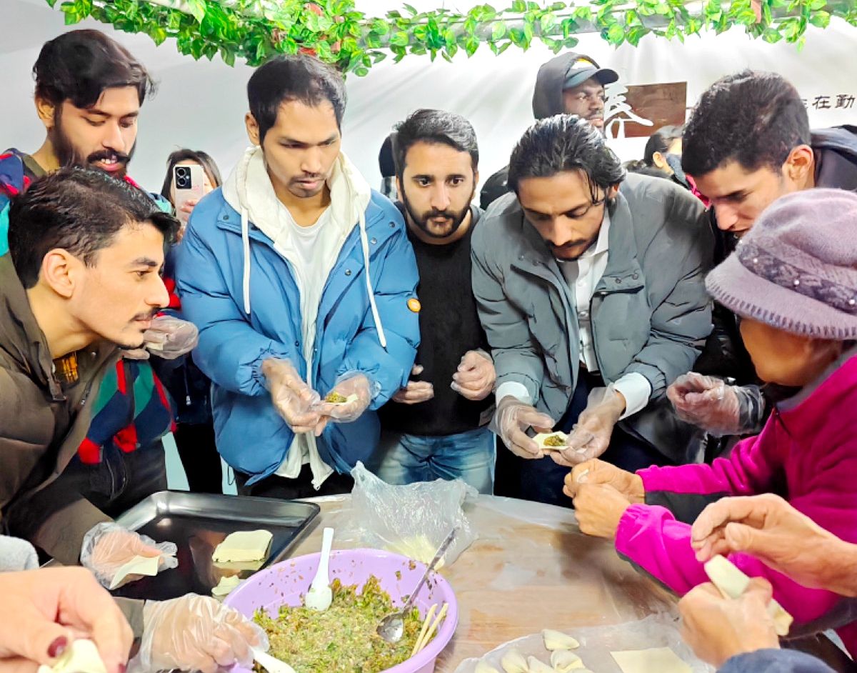 随后,外籍师生们在社区工作人员和志愿者的指导下开展了包饺子。从和面、擀皮到调馅、包饺子,每一个环节都充满了欢声笑语。部分留学生表示,这是他们第一次尝试包饺子,虽然手法略显生疏,但感受到了动手制作中国传统美食的乐趣。留学生和社区居民们围坐在一起,品尝着自己亲手包的饺子,畅谈着对中国传统文化的热爱和此次活动的感受。