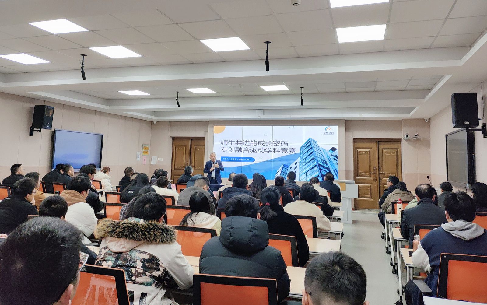 本次讲座特邀教育部就业创业指导委员会委员、武汉专创融合科技研究院院长高泽金教授担任主讲嘉宾,高教授以“专创融合驱动学科竞赛——师生共进的成长密码”为主题,并以我校2024年国奖项目为例,分享了如何精准定位项目方向、打造具有核心竞争力的创新项目的宝贵经验。同时,对项目指导过程中的难点问题,与参会教师进行了热烈的交流和讨论。