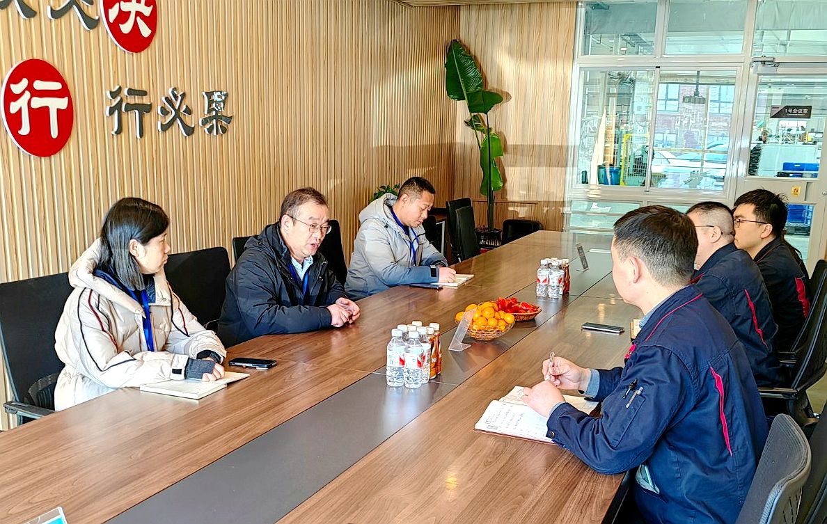 在威海邦德散热系统股份有限公司,公司负责人吴国良向刘峰一行介绍了公司的发展历史、业务范围、发展规划、运营体系等情况。