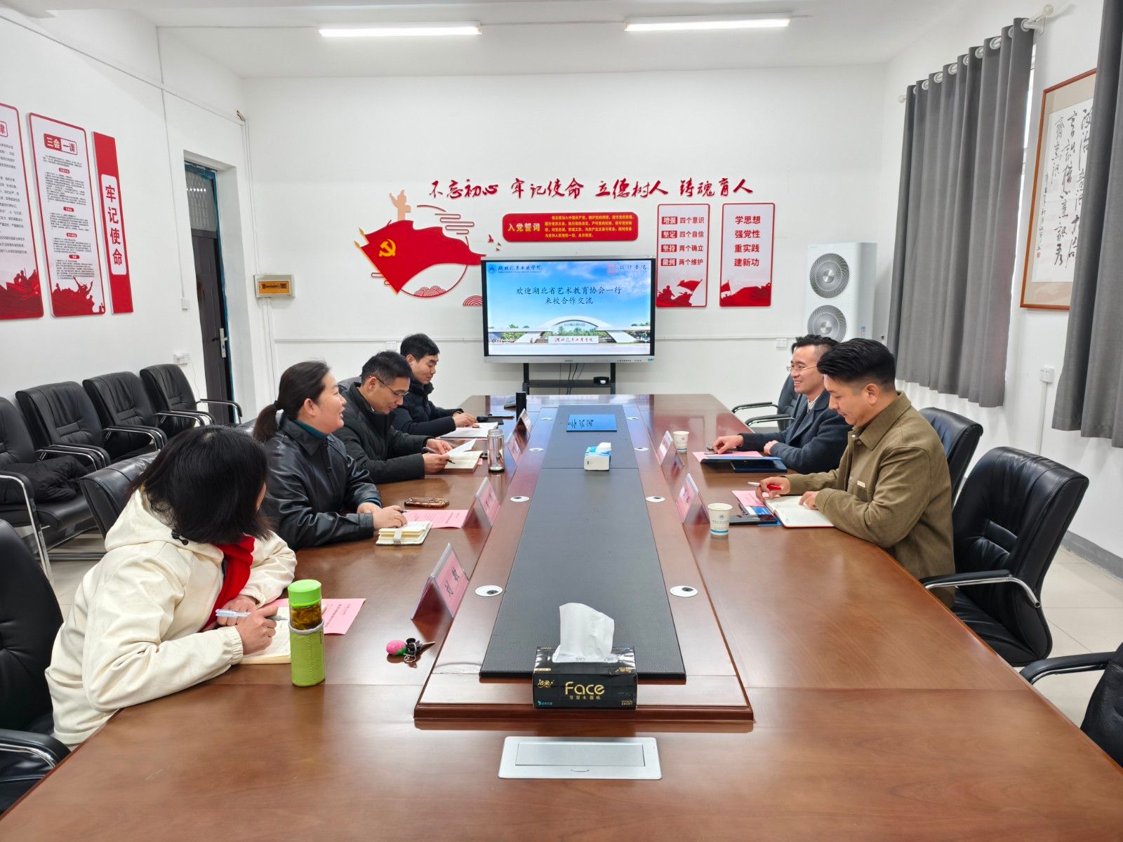 本网讯(文 王新/图 唐赫美)3月3日下午,湖北省艺术教育协会会长栾诚,党支部书记赵兴、副秘书长华科一行来我校设计学院开展座谈交流活动。设计学院党委书记黄进涛、副院长龚青山、党委副书记王新及院长助理刘敏参加座谈。