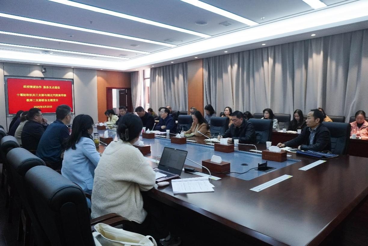本网讯(文/徐海涛)为密切政校关系,服务支点建设,3月20日下午,十堰市财政局机关三支部与汽车商学院教师二支部在我校产教大楼三楼多功能会议室联合举行主题党日活动,并开展了集中学习交流。