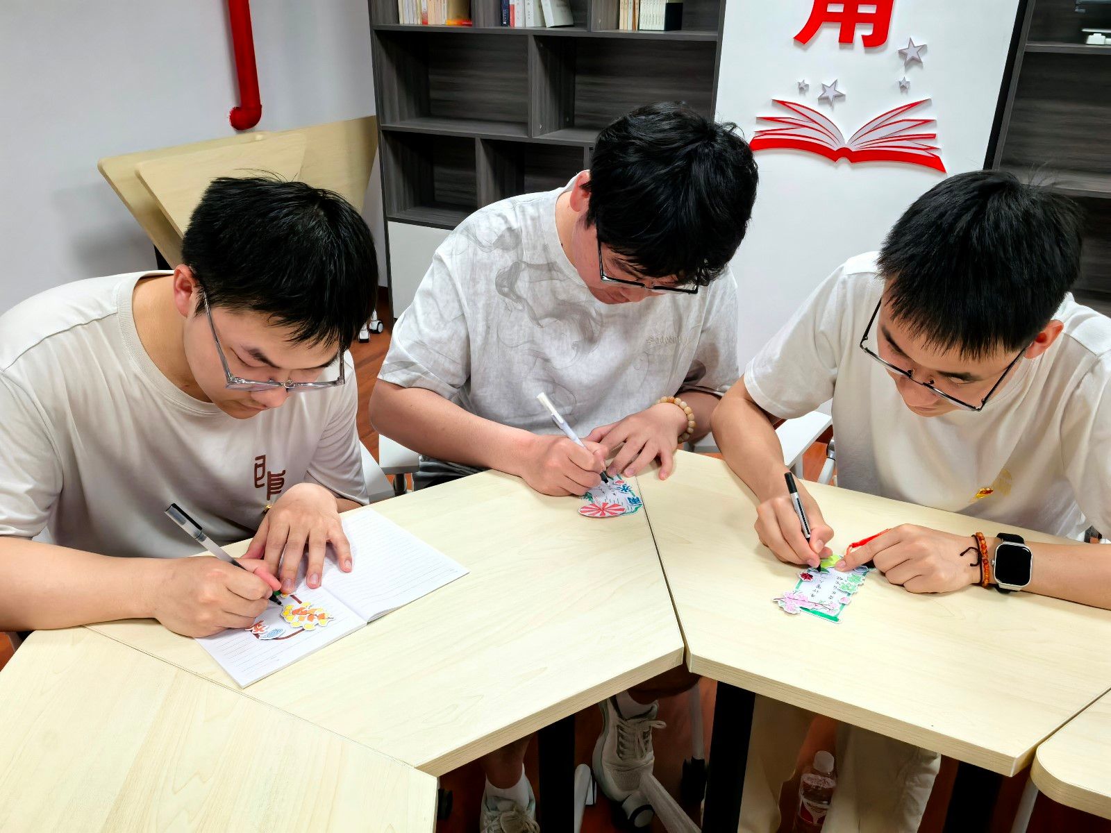 活动现场气氛热烈,学生党员充分发挥想象力和创造力,以绘画和书法等形式,在书签上绘制出象征廉洁的荷花、竹子、青松等图案,并写上与二十四节气相关的警示语,表达对廉洁的向往和追求,一幅幅精美的廉洁书签在大家的巧手下诞生。“这场活动让我明白,廉洁不仅是纪律要求,更是像节气一样融入生活的文化基因。”参与学生王志伟的感悟,道出了学院廉洁文化建设的深层价值——让清风正气如四季轮回般自然流淌,在传统与现代的交融中滋养立德树人的沃土。学生党员纷纷表示,要将“廉”味十足的书签夹在书本里,时刻警醒自己,永葆廉洁本色。