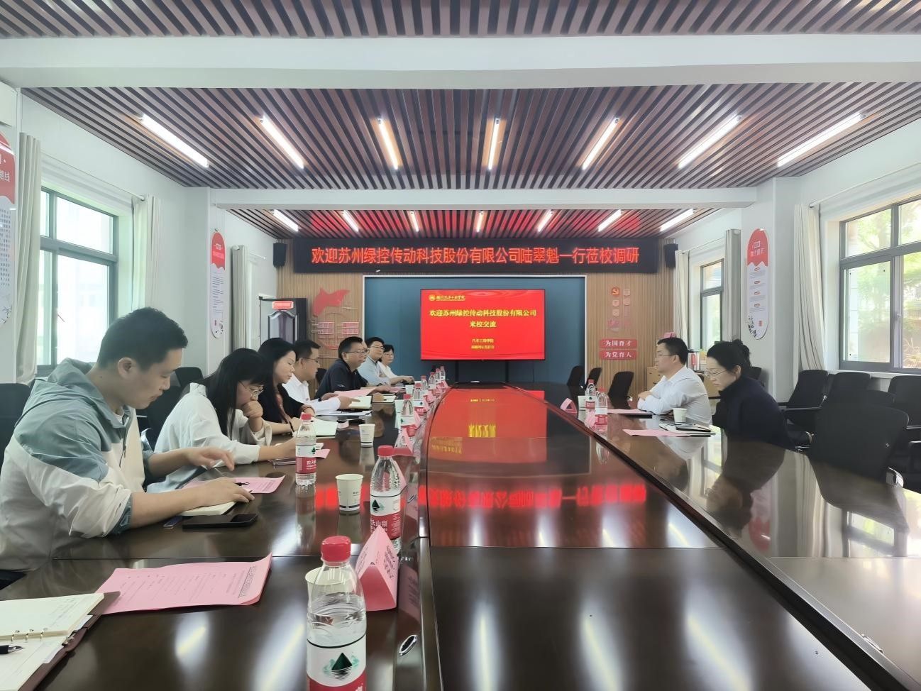 本网讯(文 李函/图 胡霄寒)4月27日上午,苏州绿控传动科技股份有限公司人力资源部总监陆翠魁、培训经理钱程一行来校进行企校联合建设调研交流。汽车工程学院党委书记杨亚会、副书记周彬、合作发展处校友服务与基金管理科科长常金星及汽车工程学院骨干教师共同参加。