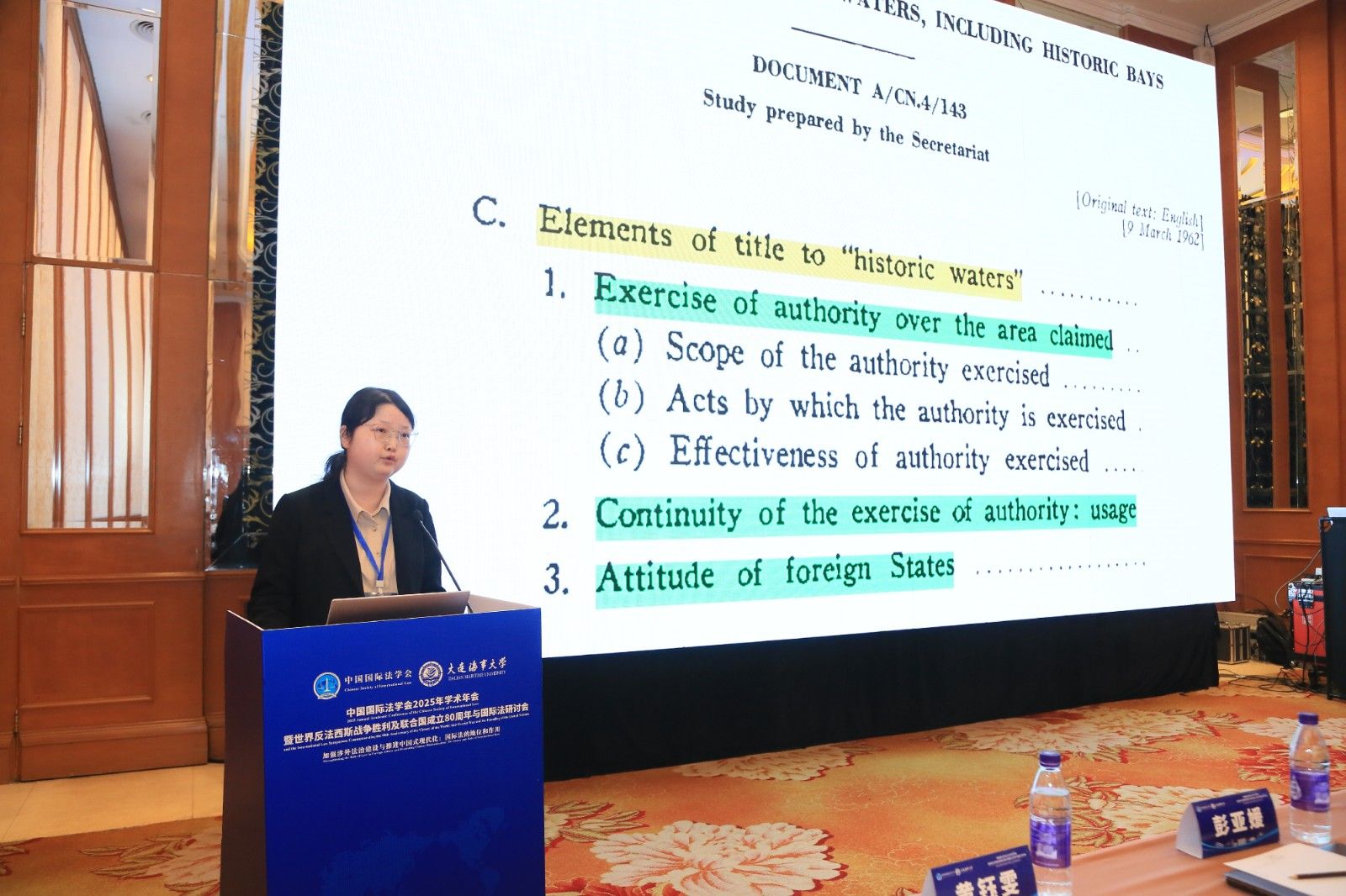 我校马克思主义学院黄钰雯博士应邀出席年会,并在“议题三:国际海洋法和极地法”分议题研讨会上作题为《美国航行自由行动对南海历史性权利的影响与对策》的专题发言。黄钰雯博士从国际法视角切入,系统分析了美国在南海的“航行自由行动”对我国历史性权利主张的认定和维护所产生的影响,并从维护我国在南海的历史性权利的角度出发,对历史性权利在认定标准的建构、话语叙事和权利实践等方面进行反思并试图提出相应的对策。
