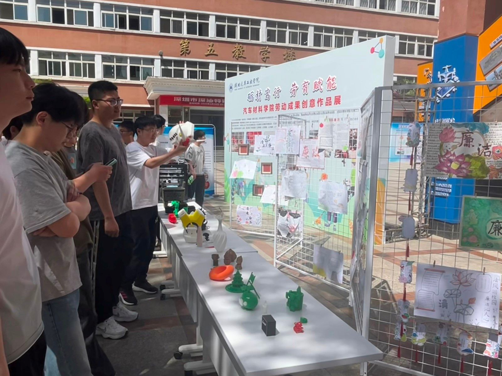 本网讯(文/图 李志强)4月30日,汽车材料学院热闹非凡,一场以“砺材笃行·劳育赋能”为主题的劳动成果创意作品展吸引了全校师生的目光。展览通过学生亲手制作的科技作品、非遗手工艺品和廉洁文化创作,生动展现了劳动教育与专业学习、文化传承融合的独特魅力。