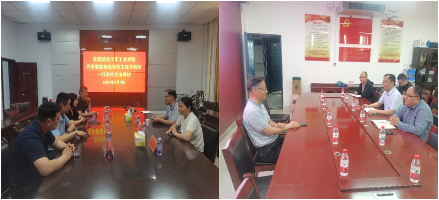 本网讯(文/图 王冠、郑樱)5月9日,湖北汽车工业学院汽车智能制造学院院长王保华、副院长王红霞一行赴南阳师范学院智能制造与电气工程学院、南阳理工学院智能制造学院开展校际交流活动。双方围绕学科建设、研究生联合培养及优质生源基地共建等议题展开深入探讨,共同谋划智能制造领域高层次人才协同培育新路径。