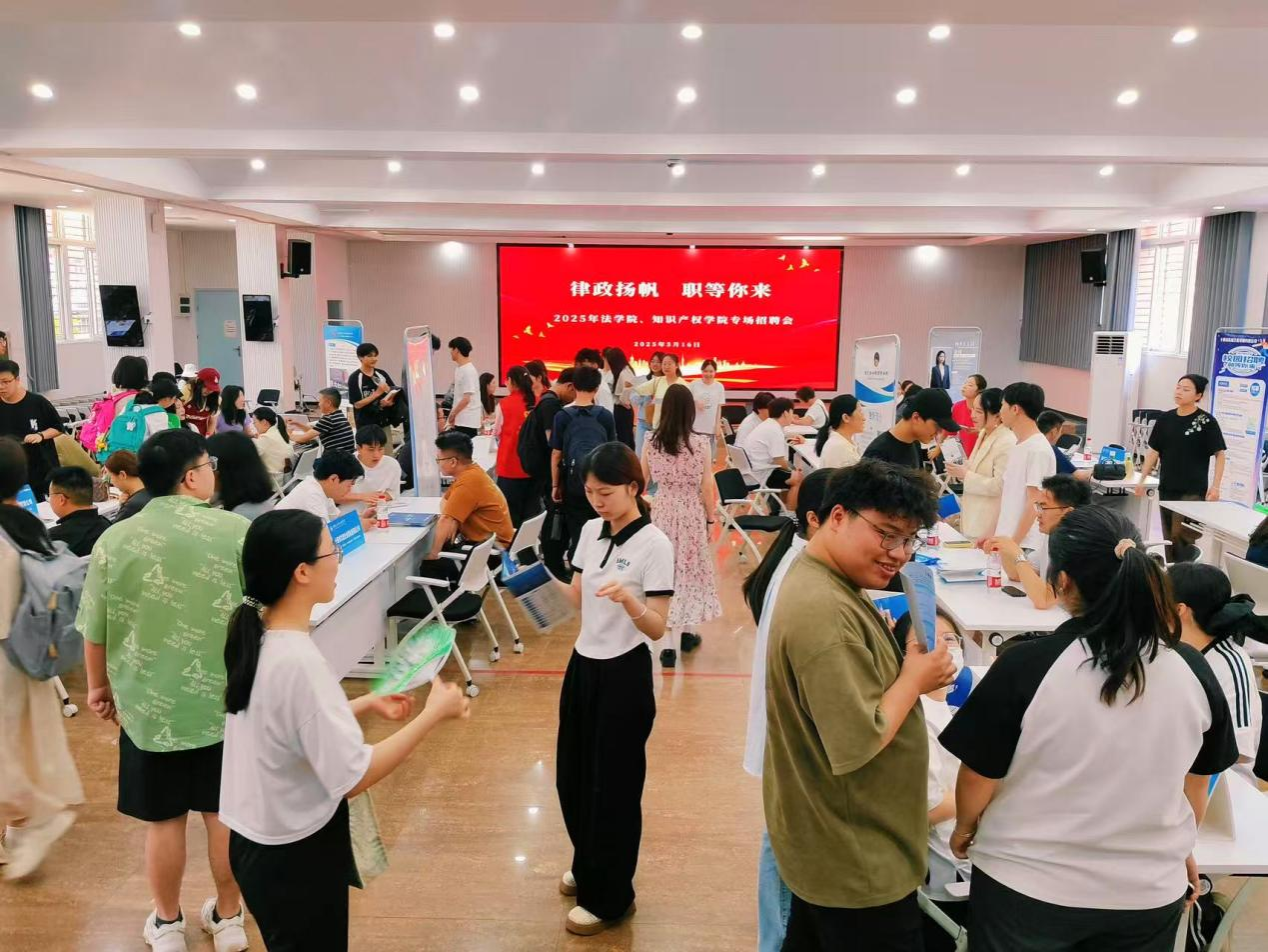本网讯(文/胡安怡、陈乐轩)5月16日上午,法学院、知识产权学院在5101报告厅举行“律政扬帆·职等你来”2025法学院、知识产权学院专场招聘会。招生与就业处处长李新伟、法学院、知识产权学院领导班子成员、专业负责人,各学院就业辅导员以及25、26届毕业生到场参加。