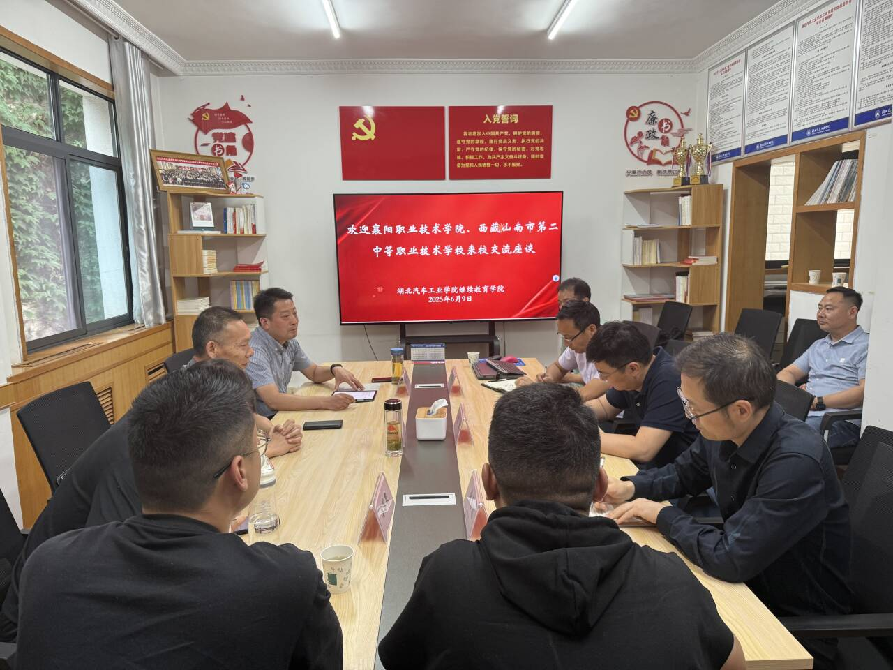 本网讯(文/图 徐美靖)6月9日,襄阳职业技术学院、西藏山南市第二中级职业技术学校一行来校开展无人机专业建设调研交流。我校继续教育学院院长缪勇等与来访团队座谈,三方达成共识:以“理论+实操”模式开展为期一周的专项培训,助力西藏职业教育师资队伍建设,深化东西部教育协作。