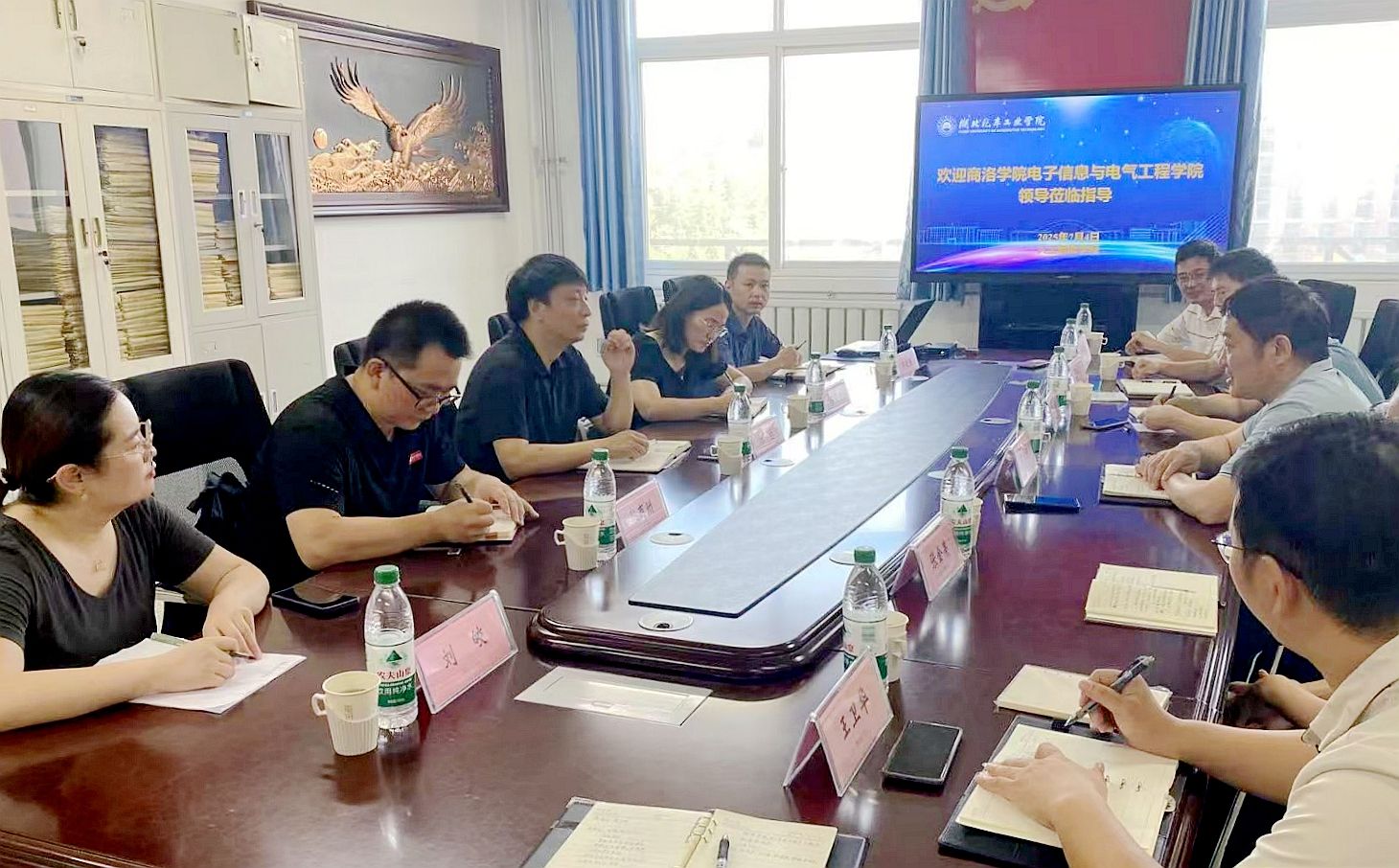 本网讯(文/图 郭琳)为深化电子信息与人工智能领域的校际合作,7月4日,商洛学院电子信息与电气工程学院院长陈垚率队莅临我校人工智能学院走访交流。人工智能学院院长黄海波热情接待。