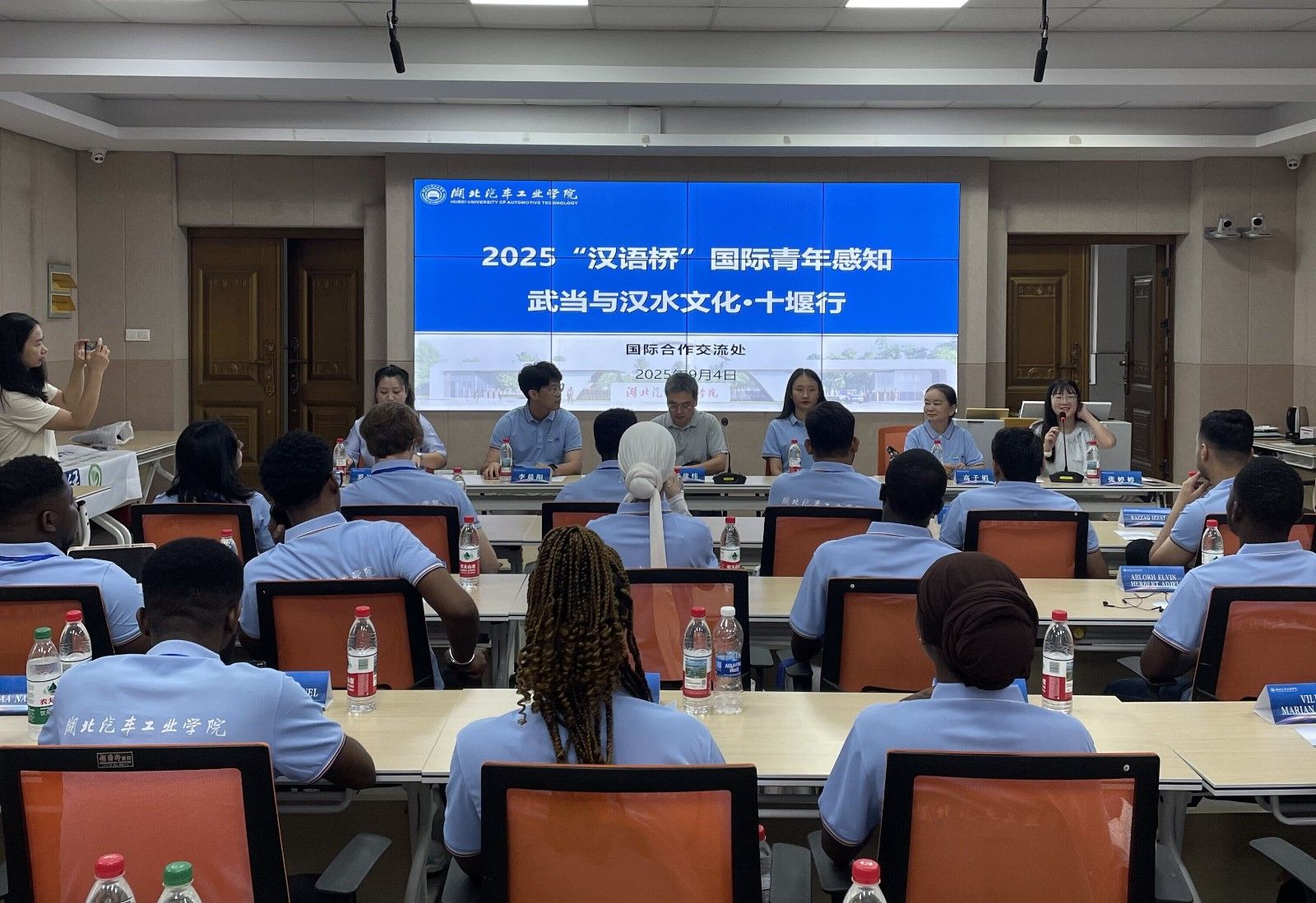 本网讯(文/图 罗诗棋)9月4日,由来自加纳恩克鲁玛科技大学孔子学院的“汉语桥”加纳学生来华团和来自北京工业大学、北方工业大学的国际青年学生共同组成的第二届“国际青年感知武当汉水文化十堰行”暑期学校开营仪式在我校顺利举行。国际合作交流处处长朱战炜致欢迎辞。