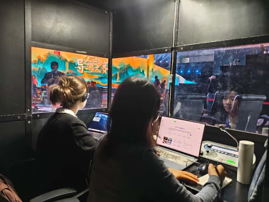大赛期间,我校陈琼、刘可欣两位教师负责同声传译工作。面对演讲节奏快、术语密集的挑战,二人凭借扎实专业功底与稳定临场表现,在高压环境下实现精准流畅的实时传译,为中外嘉宾搭建无障碍沟通桥梁,充分彰显学院翻译教师队伍的一流业务素养。