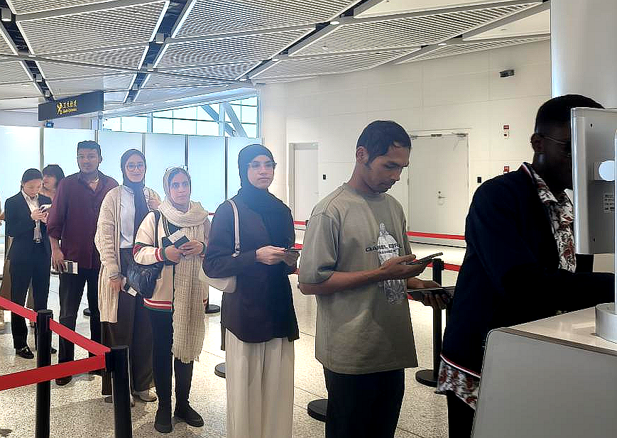 本网讯(文/图 叶舒琦)9月25日上午,国际教育学院的16名来华留学生应邀参加2025年武当山机场国际航线投运综合演练,以模拟旅客身份沉浸式体验从十堰飞往香港的入关全流程。