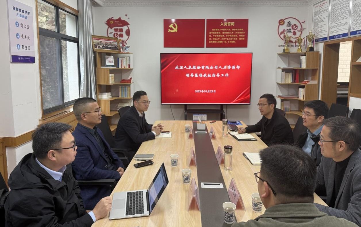 本网讯(文/丁嘉)10月23日,人本股份有限公司人力资源部总监翁士扬、人力资源部经理及我校校友焦秀东、人力资源培训部经理易兆彬一行来校调研交流。继续教育学院院长缪勇、副院长李秀刚、张国法及相关科室负责人参加座谈会。