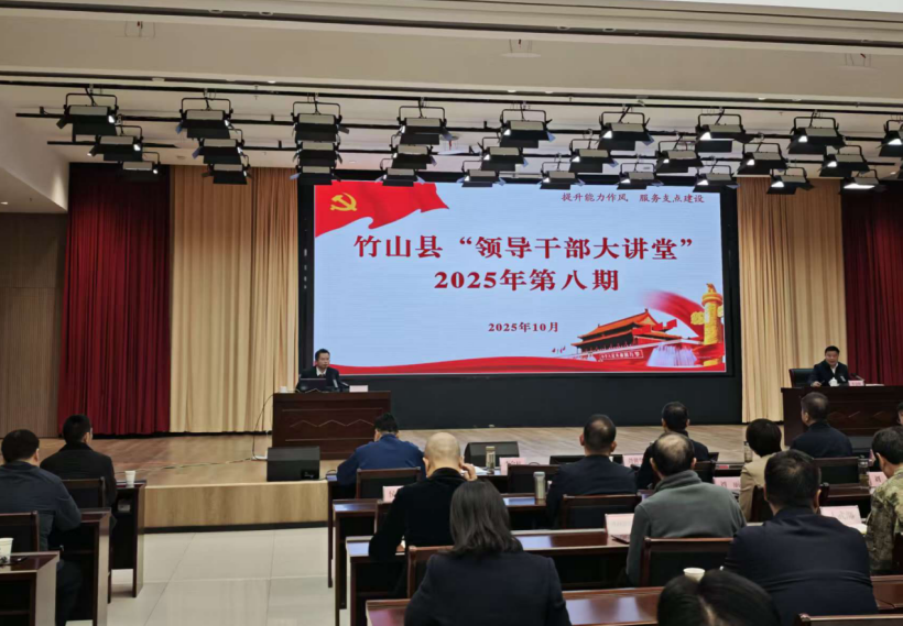 本网讯(文/蔡珍珍)10月23日,马克思主义学院院长黄永昌一行赴竹山县“理论热点面对面”实践基地,为当地2025年第八期“领导干部大讲堂”作《弘扬十堰文化精神 助力城市跨越发展》专题授课。竹山县委常委、宣传部部长李金柱主持报告会,县各部门及乡镇负责人参会。