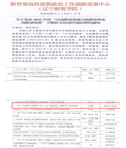 本网讯(文/张朋刚)近日,全国高校思想政治工作网公布了由教育部高校思想政治工作创新发展中心(辽宁财贸学院)发布的《以高质量党建引领教育事业高质量发展”主题征文活动评选结果的公告》,我校青春助航辅导员工作室报送的《“一站式”社区破解学生思政教育“最后一公里”的党建经验——以湖北汽车工业学院为例》荣获案例类三等奖。