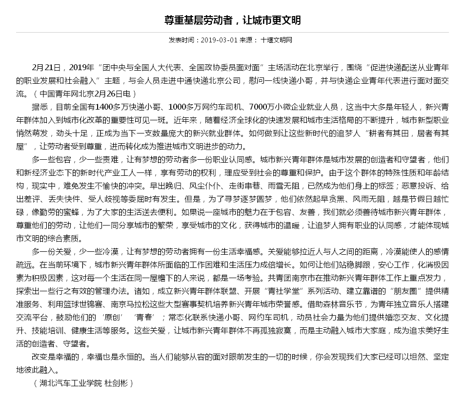 【十堰文明网】尊重基层劳动者,让城市更文明