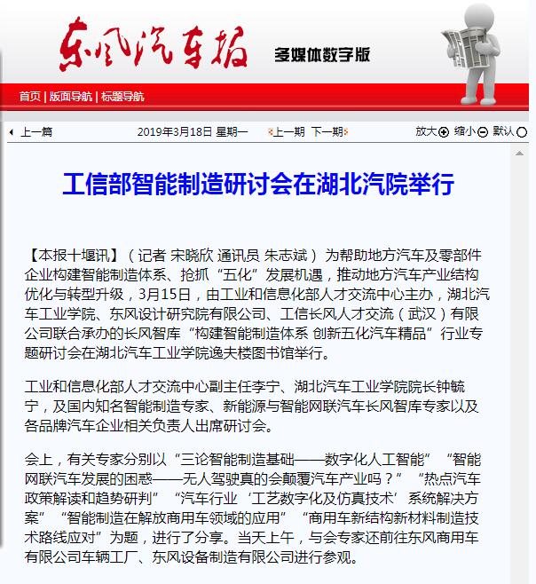 【东风汽车报】工信部智能制造研讨会在湖北汽院举行
