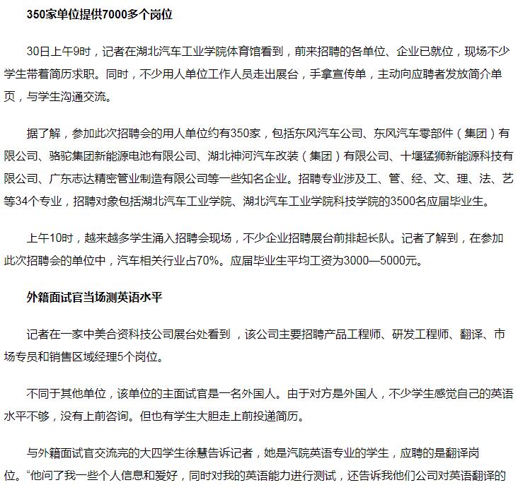 【秦楚网】汽院春季校园招聘会举行,全国350家单位提供7000多个岗位