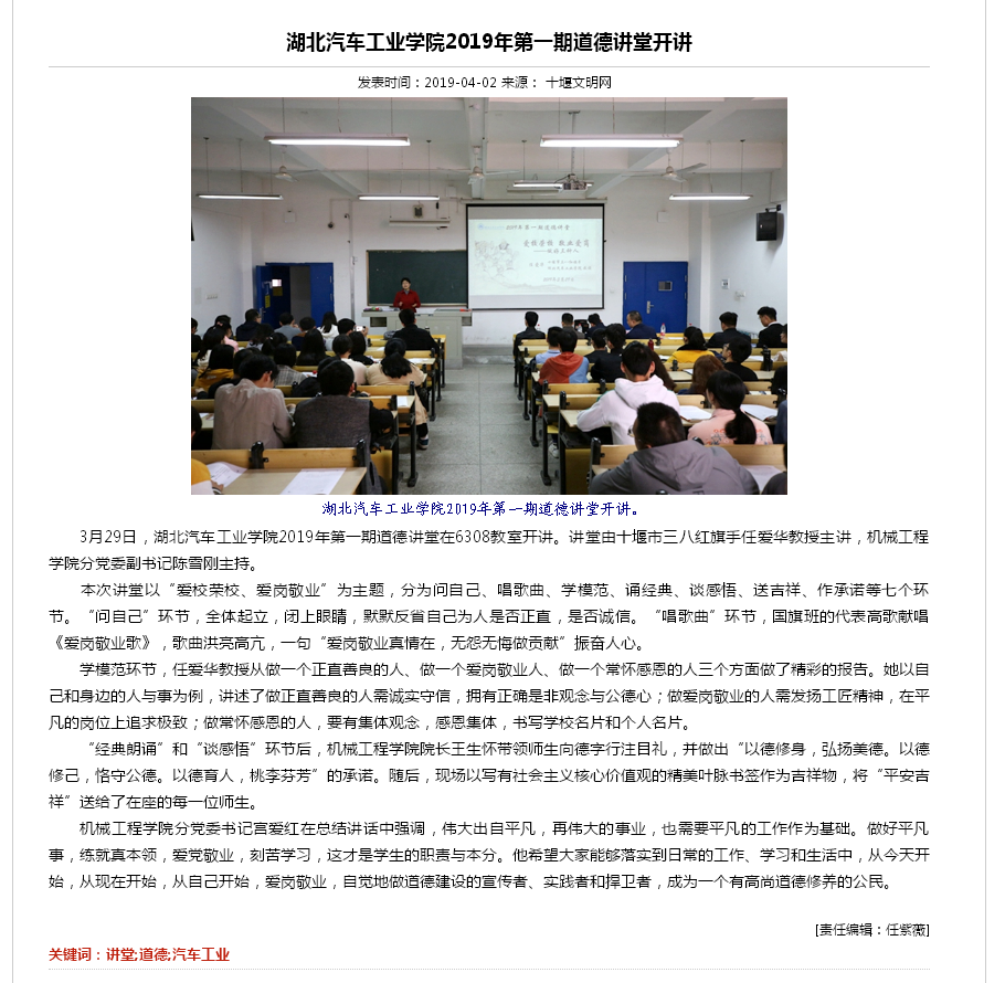 【十堰文明网】湖北汽车工业学院2019年第一期道德讲堂开讲