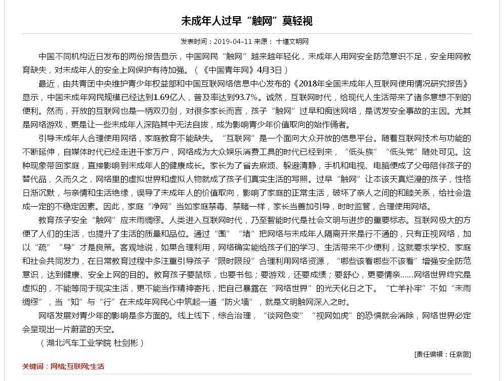【十堰文明网】未成年人过早“触网”莫轻视