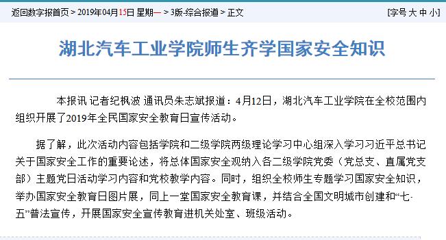 【十堰日报】湖北汽车工业学院师生齐学国家安全知识