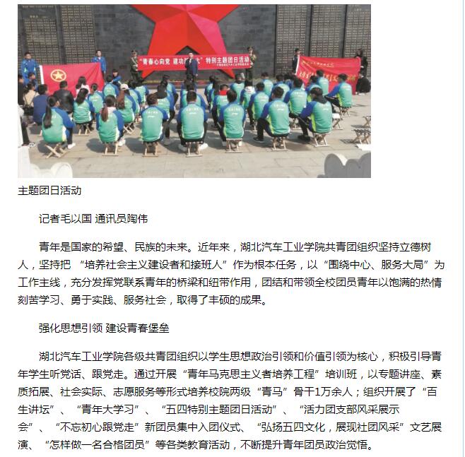 【十堰日报】用责任担当诠释青春---湖北汽车工业学院共青团工作侧记