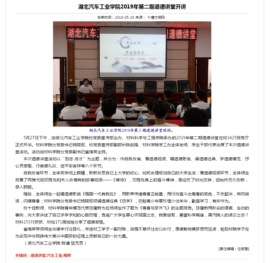 【十堰文明网】湖北汽车工业学院2019年第二期道德讲堂开讲