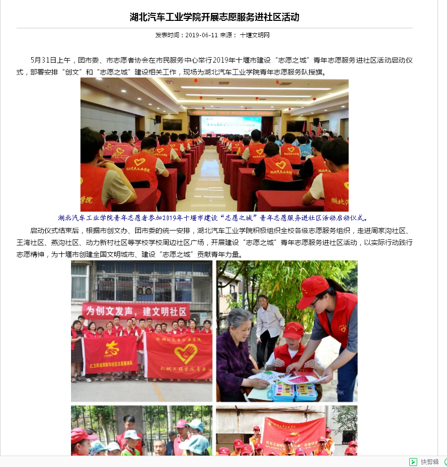 【十堰文明网】湖北汽车工业学院开展志愿服务进社区活动