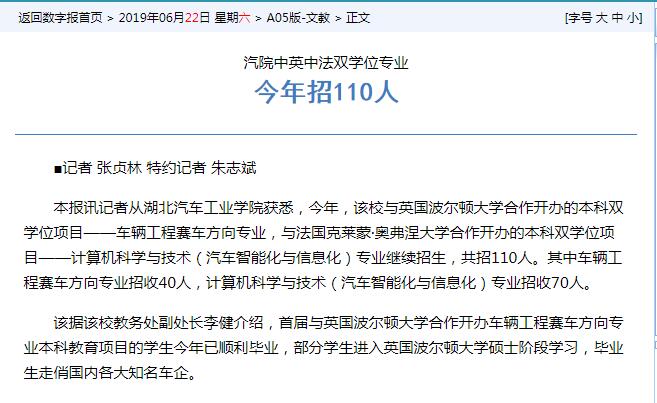 【十堰晚报】汽院中英中法双学位专业今年招110人