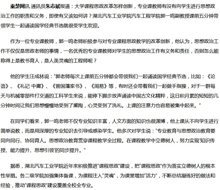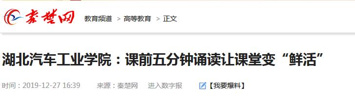 【秦楚网】湖北汽车工业学院:课前五分钟诵读让课堂变“鲜活”
